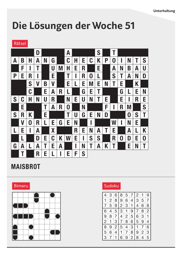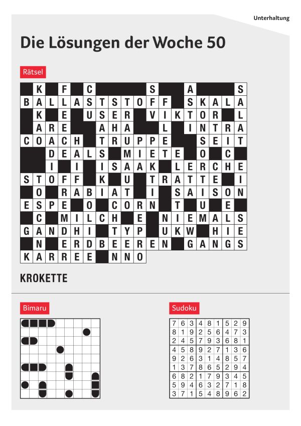 Express - Die Lösungen Hier finden Sie regelmässig die Rätsel-Lösungen aus der Express-Zeitung. Wir wünschen Ihnen viel Spass! Express - Die Lösungen der Woche 51 15.12.2025 bis 20.12.2025 Express - Die Lösungen der Woche 50 08.12.2025 bis 13.12.2025 Express - Die Lösungen der Woche 49 01.12.2025 bis 06.12.2025 Express - Die Lösungen der Woche 48 24.11.2025 bis 29.11.2025 Mehr