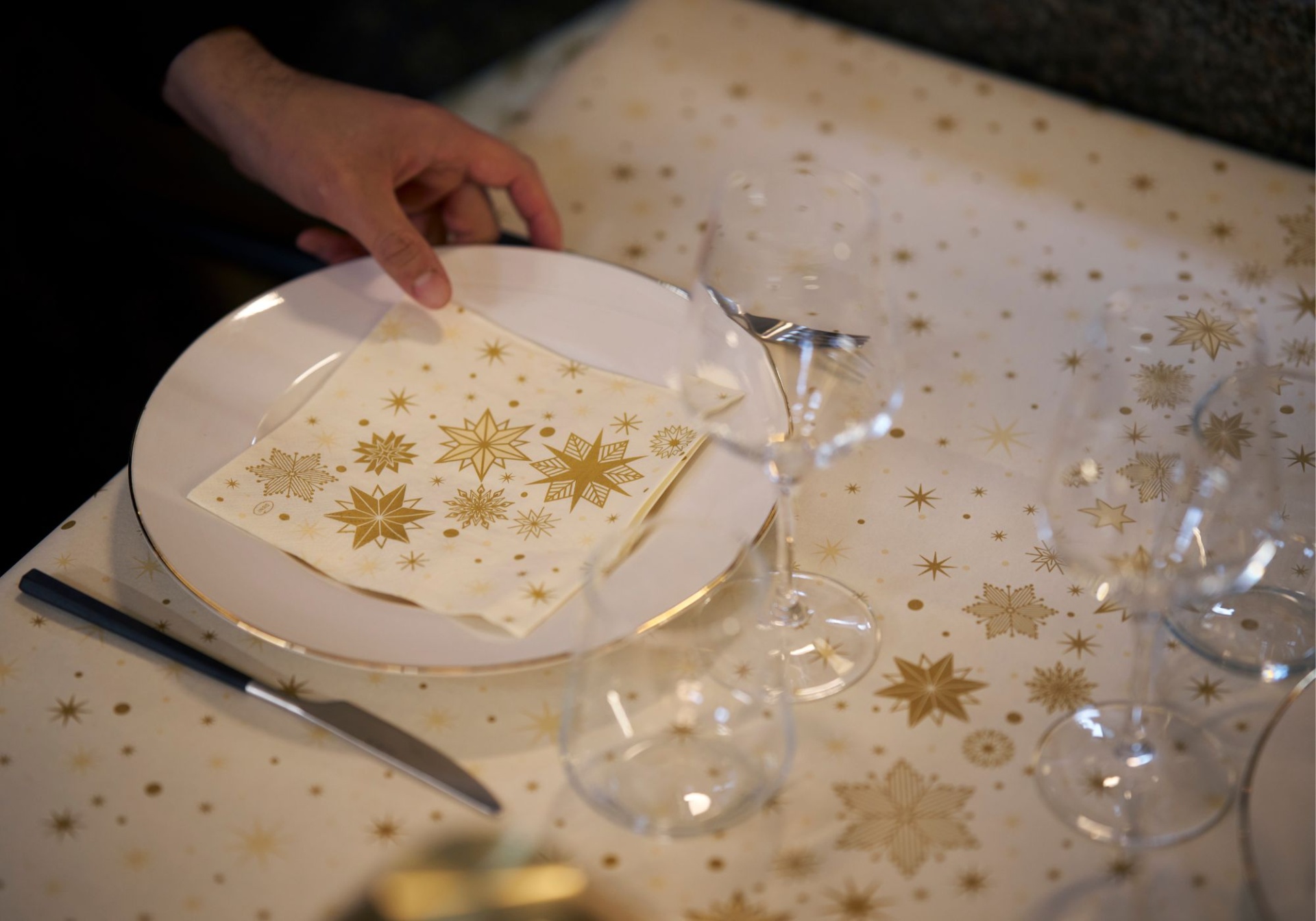 Wenn’s draussen stürmt, darf drinnen der Winter strahlen. Mit Stargazing Cream zieht ein winterlicher Glanz auf den Tisch – würzig, elegant und voller Charakter. Inspiriert von der Natur zeigt das Design, wie ausdrucksstark der Winter inszeniert werden kann: leichte Gold- und Cremetöne passend zur Jahreszeit - und ein Hauch Eleganz laden Ihre Gäste zum Verweilen ein.