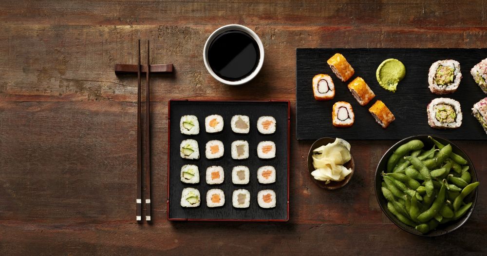 Am besten decken Sie sich gleich auch noch mit eingelegtem Ingwer, Wasabipaste und Sojasauce ein. So steht dem Festschmaus Ihrer Gäste nichts mehr im Weg.