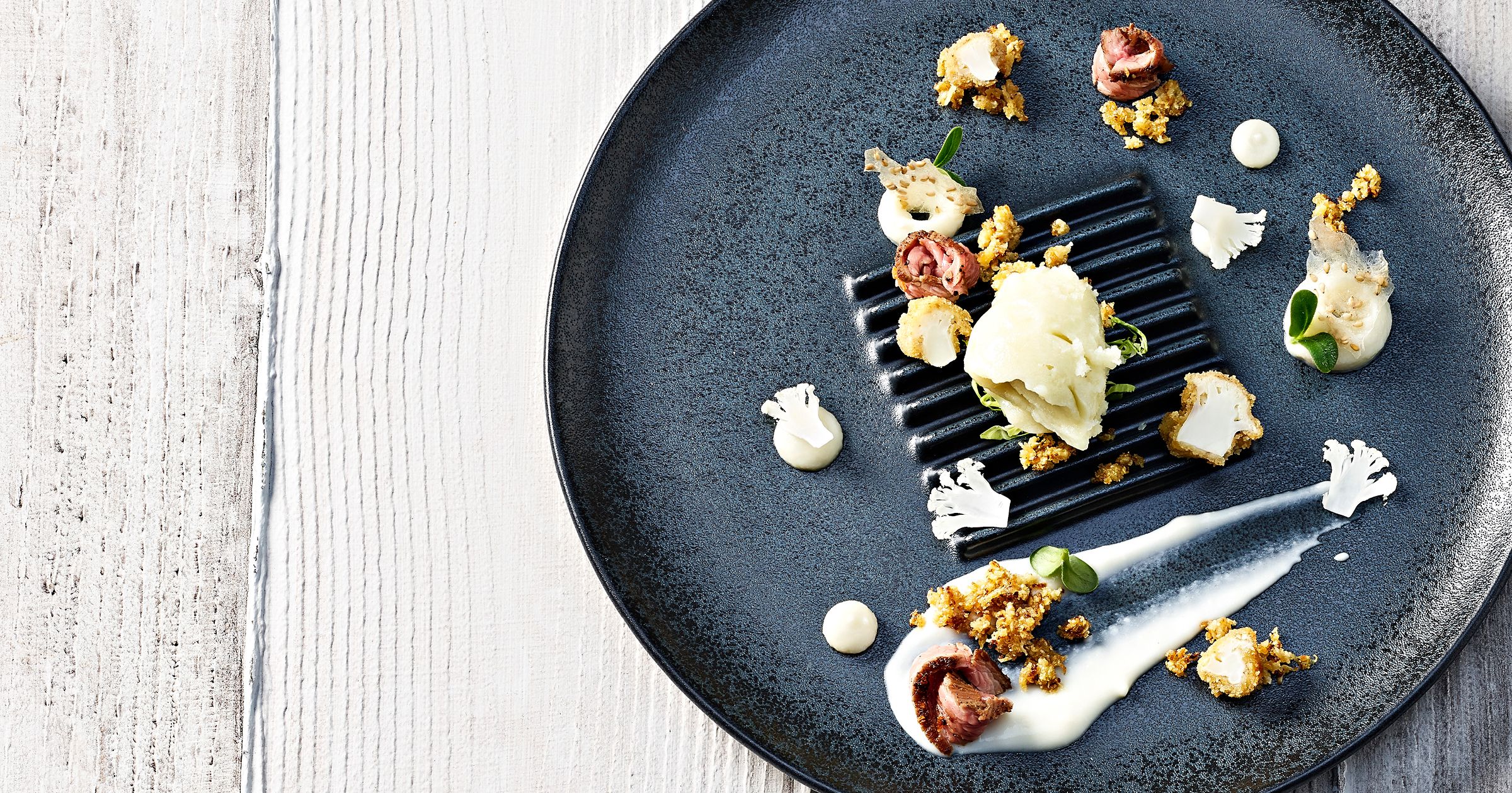 Texturen vom Blumenkohl / Hanging Tender vom Kalb in Coffee gerubbt