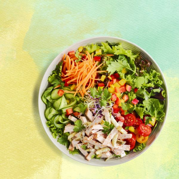 Herzhafte Salatbowl mit Fleischkäse-Salat