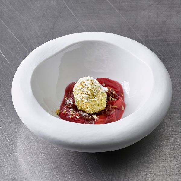 Zartes Lammnierstück, überbacken mit einer aromatischen Bärlauchkruste, serviert auf einem würzigen Ragout aus Borlotti-Bohnen und Tomaten. Ein Gericht, das Frische und Raffinesse auf den Teller bringt.