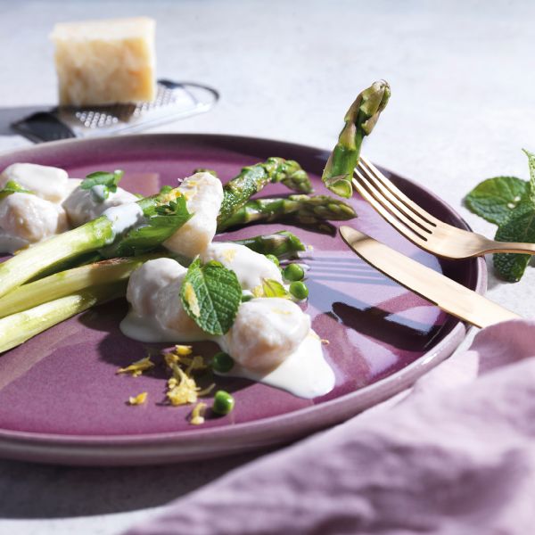 Blumenkohl-Gnocchi mit Spargeln