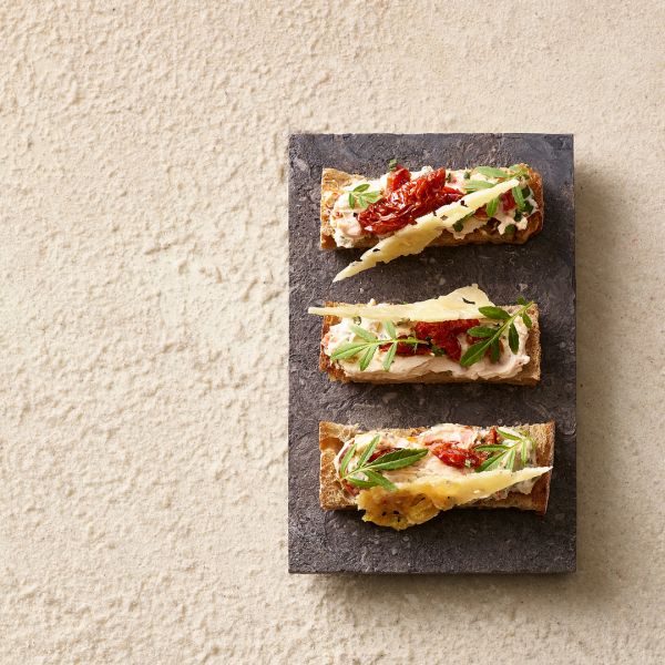 Käsechips | Käsecreme | Schnittlauch | dunkles Brot