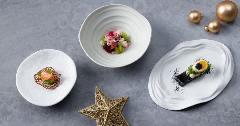 la vedette. Quasi comme un mets normal, mais en plus stimulant. En effet, tout doit être saisi en un seul coup d’oeil et goûté en une seule bouchée. Les possibilités de combinaison sont pratiquement infinies. Pour notre menu de fête, nous misons sur le pain, l’oeuf de caille et le fromage à pâte molle. Cela semble simple? Laissez-vous surprendre.