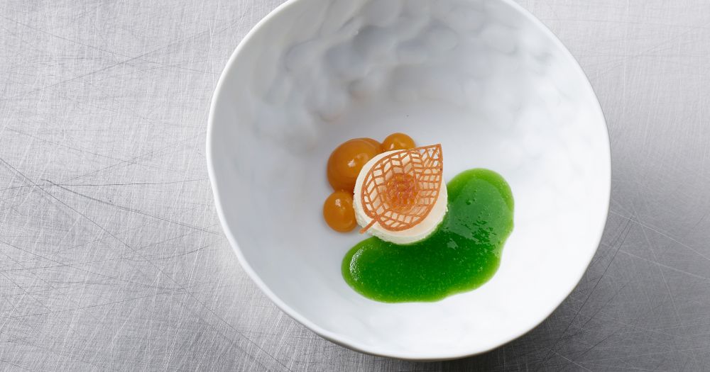 gustative. Nous avons pris le Triple Crème Germain comme exemple. Ce fromage à pâte molle au lait de vache de la Fromagerie Germain, plusieurs fois primé, est l’archétype de l’artisanat fromager français traditionnel. Dans notre pré-dessert moderne, nous conférons un nouvel habit à ce produit tendre et crémeux qui sait tout faire, et nous combinons cette même tradition avec des composants fruités et piquants. Une alternative passionnante à laquelle peu d’estomacs pourront se soustraire.