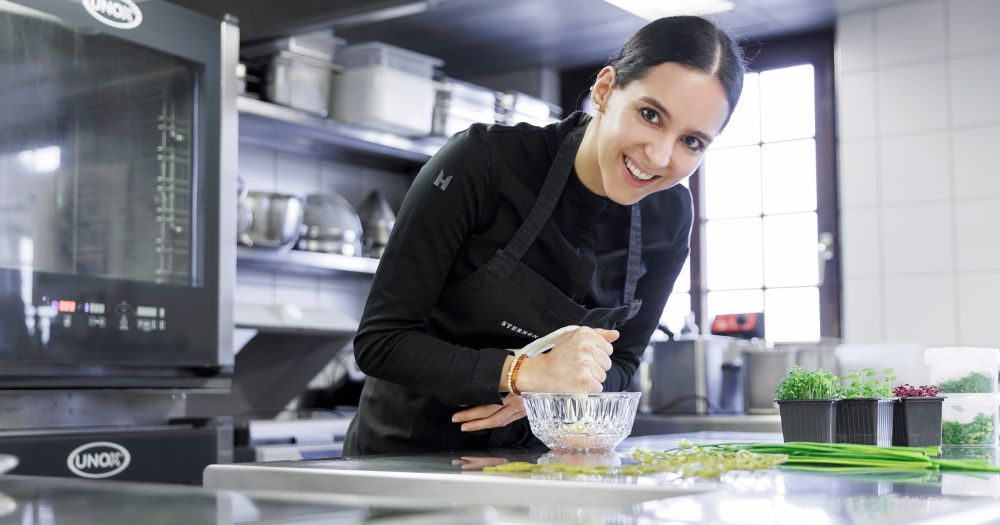 «Pourquoi pas?» - Si l'on demande à Noémie Bernard ce qui l'a poussée à diriger un restaurant à seulement 30 ans, il ne faut pas s'effaroucher devant l’assurance de sa réponse. Depuis quatre ans, elle chouchoute ses clients au plus haut niveau au Sternen à Walchwil, aujourd’hui distingué par 15 points Gault&Millau. Avant cela, elle avait fait ses armes auprès de Tanja Grandits au restaurant Stucki, au Bellevue Palace à Berne, au Park Hotel Vitznau et avec Armin Amrein à l'hôtel Walserhof, où elle a effectué son apprentissage. Sa passion pour le métier de cuisinier lui a été transmise au berceau peut-on dire. Ses parents, Giorgio et Anita Bernard, sont eux-mêmes restaurateurs à succès. Ils ont notamment travaillé à l'hôtel Schwert à Näfels, dans différentes cantines et, plus récemment, au Gasthaus Bergli à Linthal. Aujourd'hui, ils aident leur fille à accomplir son rêve.