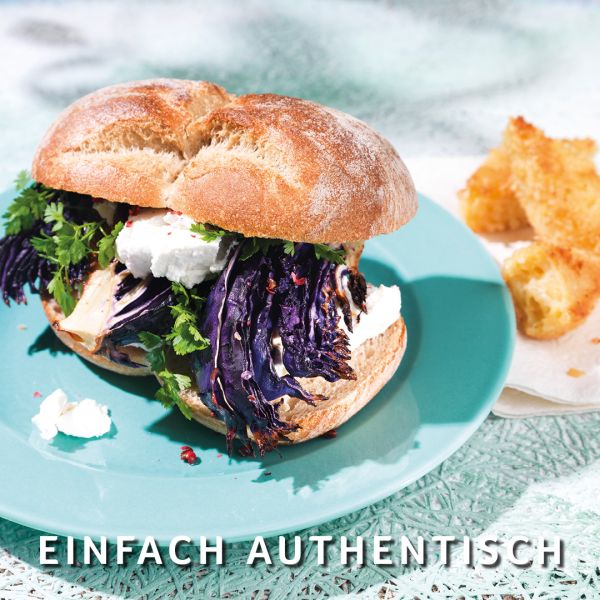 Burger à la ricotta fumée & au chou rouge / Croquettes Mac and Cheese