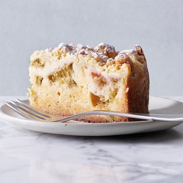 Tarte à la rhubarbe garnie de crumble