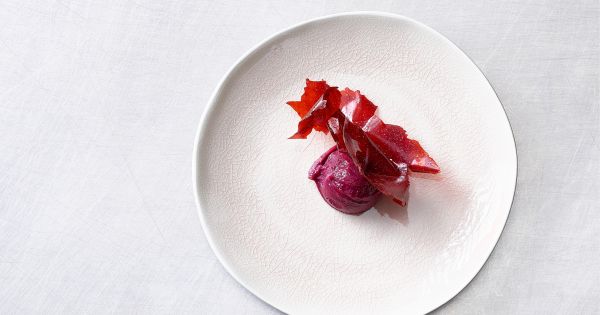 Sorbet au chou rouge avec chips de betterave et genièvre
