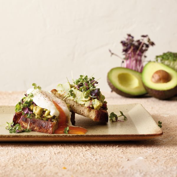 Pain d'épeautre à l'avocat et œuf poché d'élevage en plein air