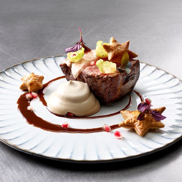 Côte couverte de bœuf Simmentaler / Panais / Levure cuite au four / Jus d'échalotes