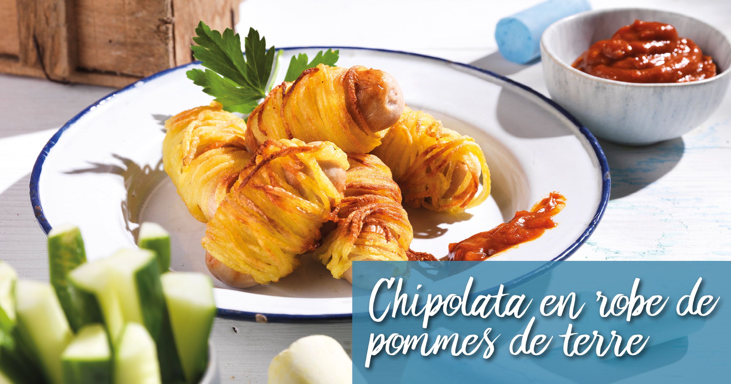 Chipolata en robe de pommes de terre croustillantes et ketchup au curry