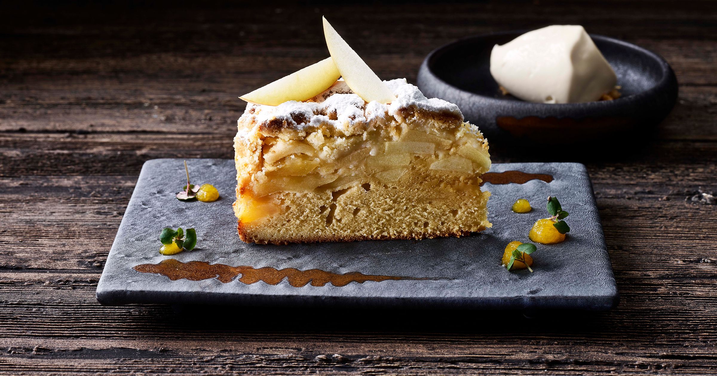 Saupoudrer le gâteau de sucre glace et servir avec la glace.