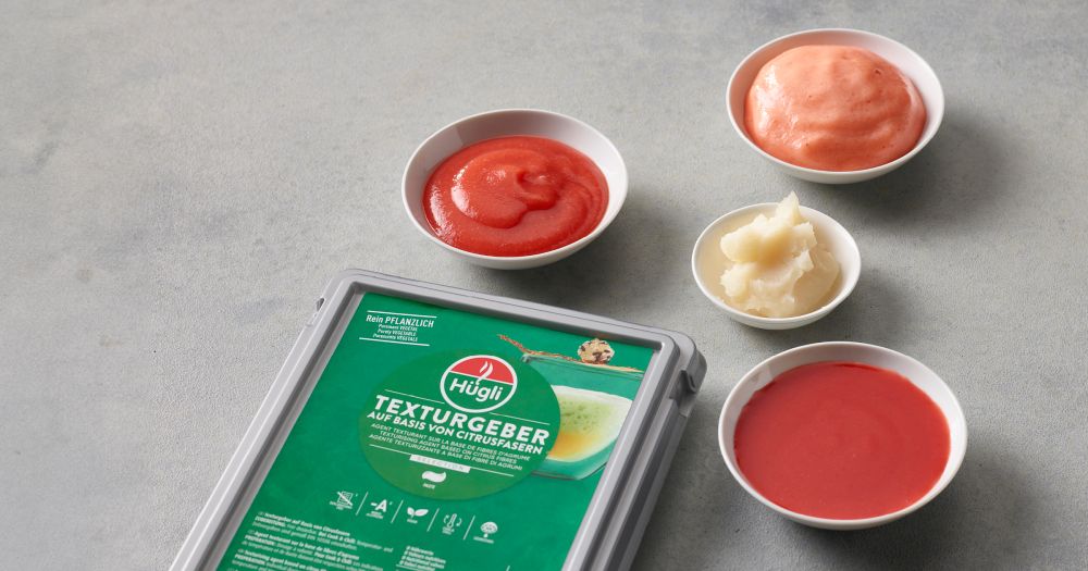 Di leganti e stabilizzanti ve ne sono in abbondanza, ma quello di Hügli è davvero molto particolare, poiché è costituito da fibre di agrumi e acqua, ovvero solo due ingredienti che possono essere utilizzati per quasi tutti i tipi di alimenti. Inoltre, l'indicazione sul menu non è necessaria. Non importa che si tratti di componenti vegani, caldi, alcolici o addirittura surgelati: questo legante naturale, facile da dosare, garantisce stabilità. Ciò facilita anche il lavoro per il menu festivo, per esempio, se il servizio richiede un po' più di tempo durante lo stress delle festività, in modo che la zuppa non formi una sorta di pellicola sulla superficie, l'espuma non si afflosci e il sorbetto non si sciolga rapidamente.