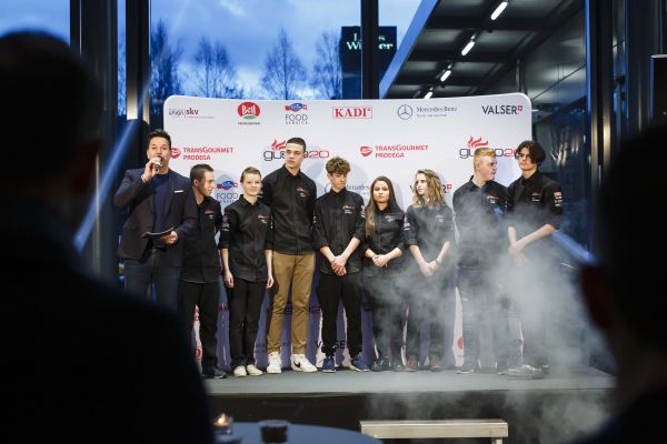 accompagnato da un shot di zucca bio & Chermignon Salsiccia cruda di maiale delle Alpi alla julienne