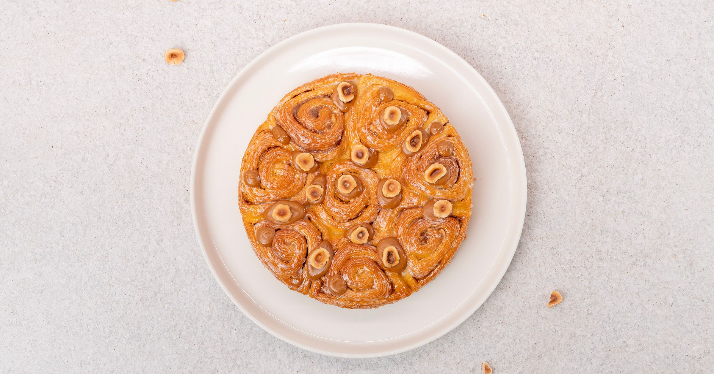 Con questa brioche di pasta sfoglia le delizie invernali tanto amate vengono reinterpretate: la forma arrotolata e il gusto caldo della cannella dei rinomati "Cinnamon Rolls" scandinavi incontrano la croccante pasta sfoglia, aromi delicati di mandorle e nocciole, come anche noci croccanti - una festa per i sensi! La pasta sfoglia offre una consistenza croccante e una veste diversa rispetto alla classica pasta brioche. Le nocciole intere e il raffinato ripieno pralinato di nocciole garantiscono straordinari momenti di piacere.