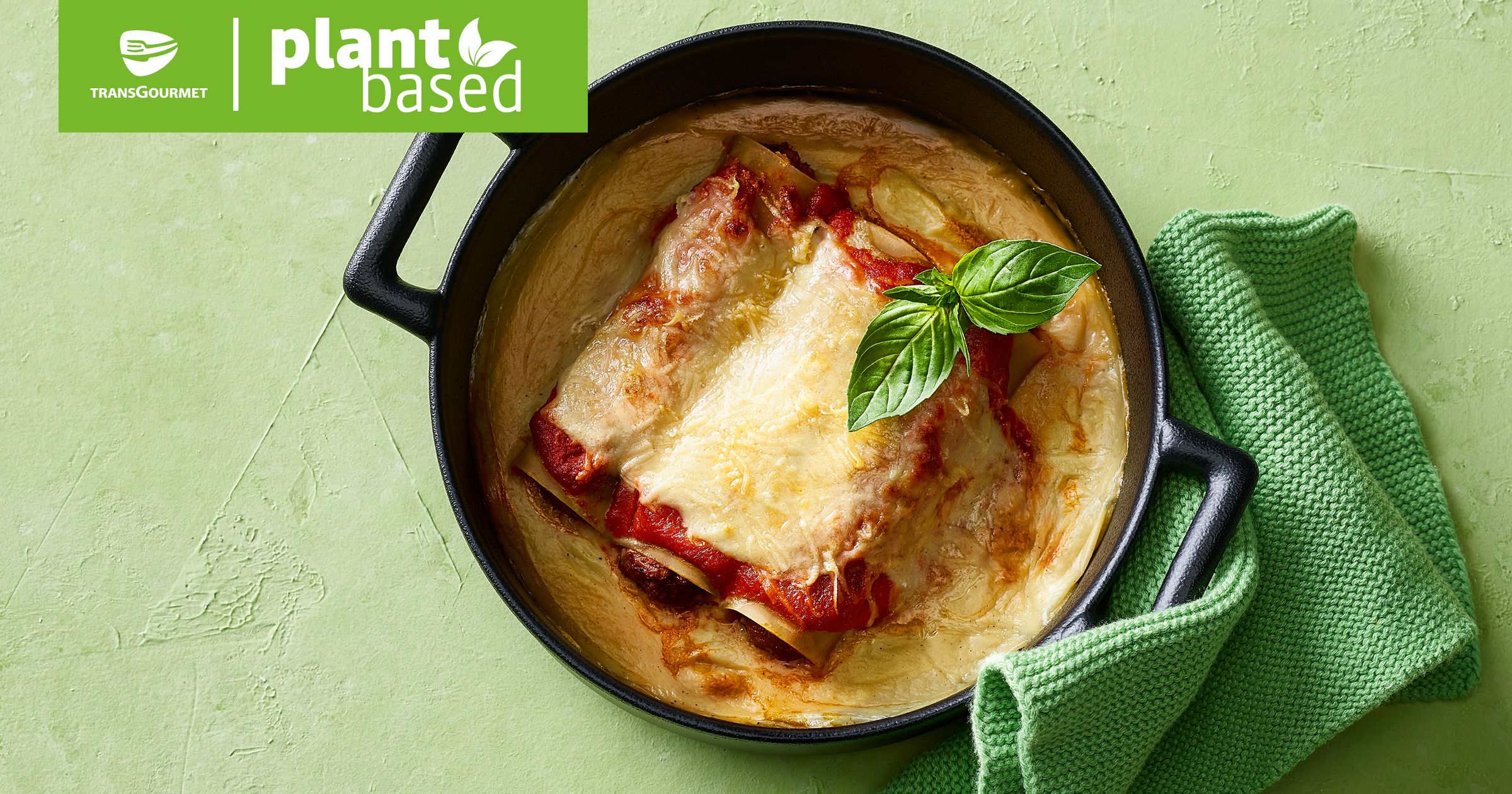 Farcire bene i cannelloni con il composto di macinato. Spalmare sul piatto la salsa di pomodoro e disporre tre cannelloni. Cospargere con la restante salsa di pomodoro e versare la besciamella. Aggiungere la mozzarella e cuocere a 160 ° C nel forno termoventilato per 20-25 minuti. Prima di servire decorare con del basilico.